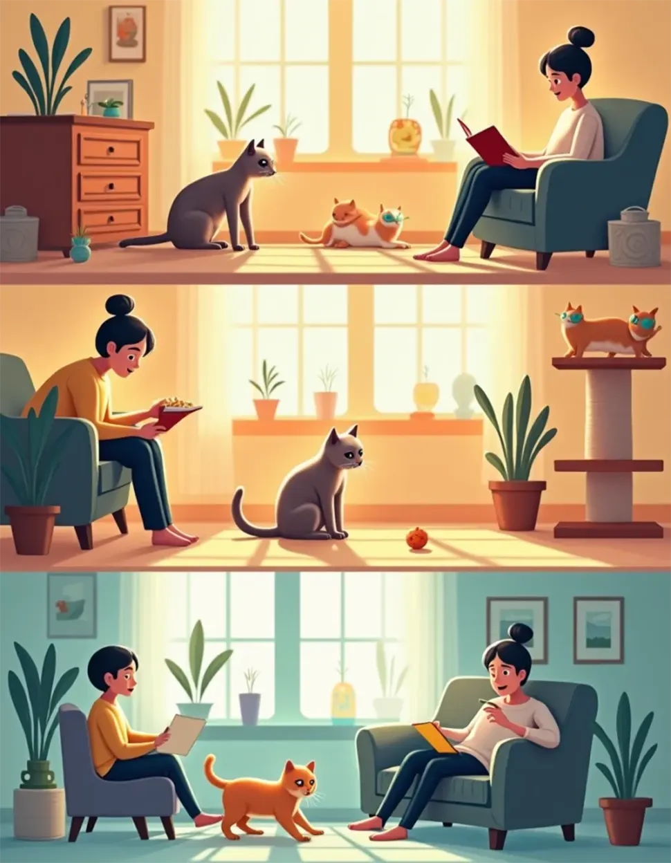 - Points d’attention : même après une intégration complète, le chat peut présenter des rechutes temporaires en cas de stress (orage, visiteur, changement de routine).